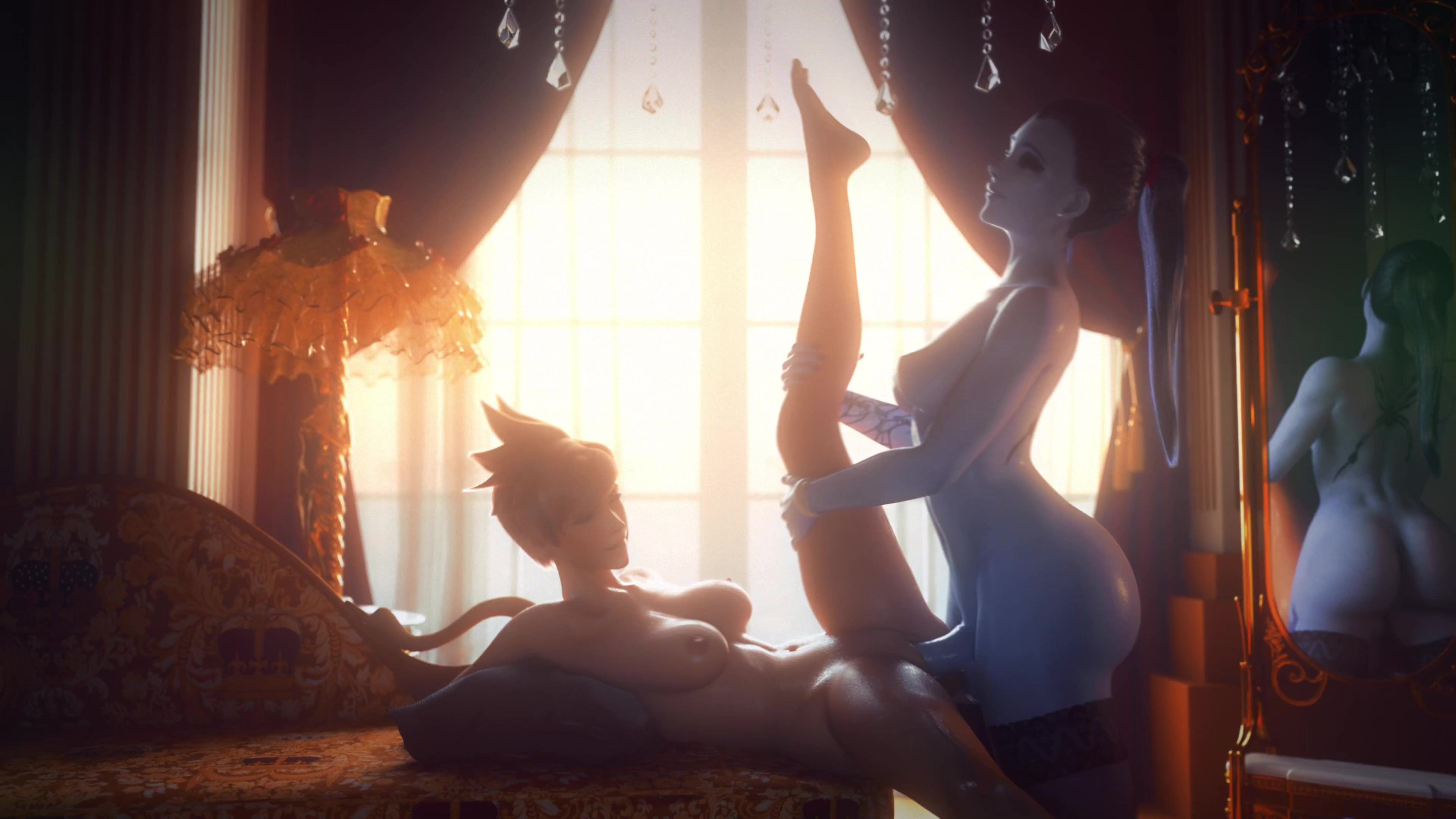 Watch as Widow and Tracer, both female futas, engage in a steamy lesbian 4K porn video!