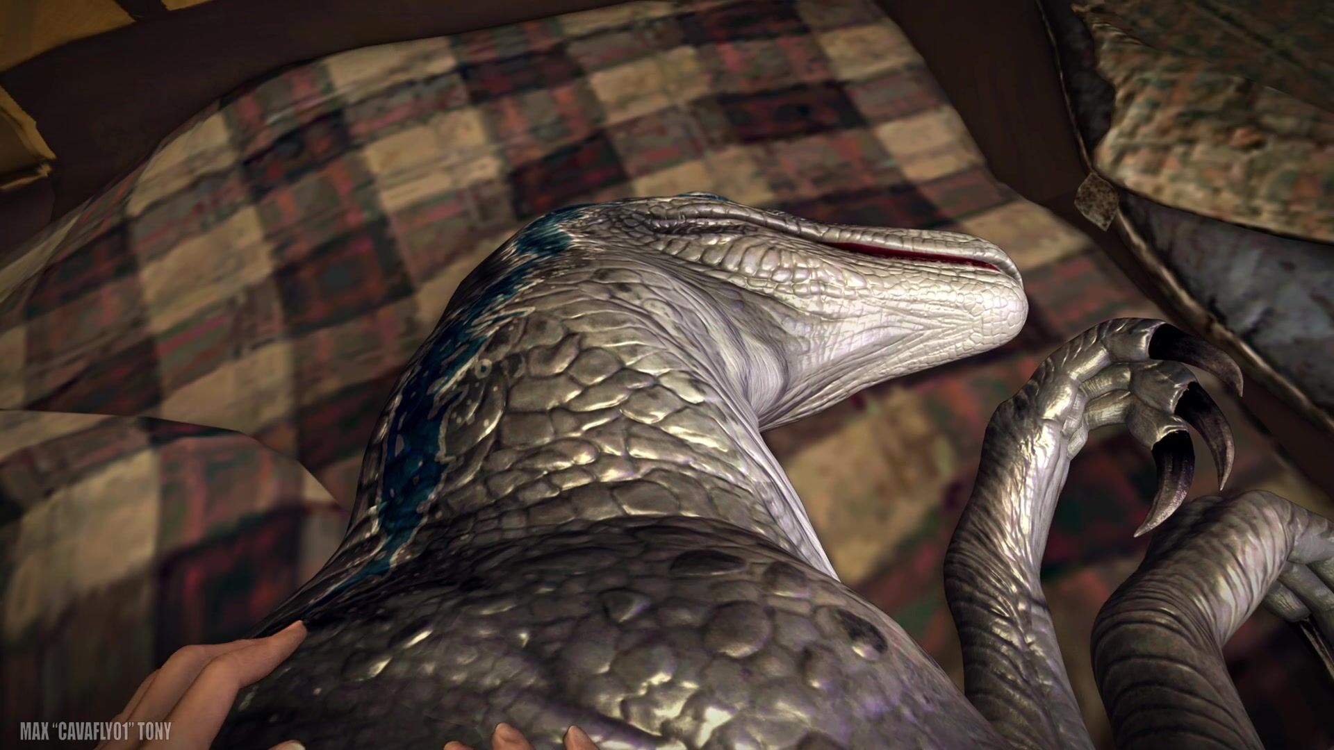 Back when I started working on hentai PORN video description, "Raptors 27 Nest" aka Scene 100 had a different scenario in mind. I was going for multiple scenes with multiple sceneries and situations. Yeah, definitely out of my league at the time. Before refocusing on the actual orgy scene, I started an alternate opening which I did advance nicely before scrapping it out for lack of motivation. But I kept the file and so I decided to continue it the way I intended back then. And here it is, a deleted scene XD What you could call a Scene 100 deleted scene haha. Here comes a real passionate and tender close moment with Blue the raptor who decided to enjoy very softly this intimate moment. Massage, fingering, penetration, all for her pleasure.