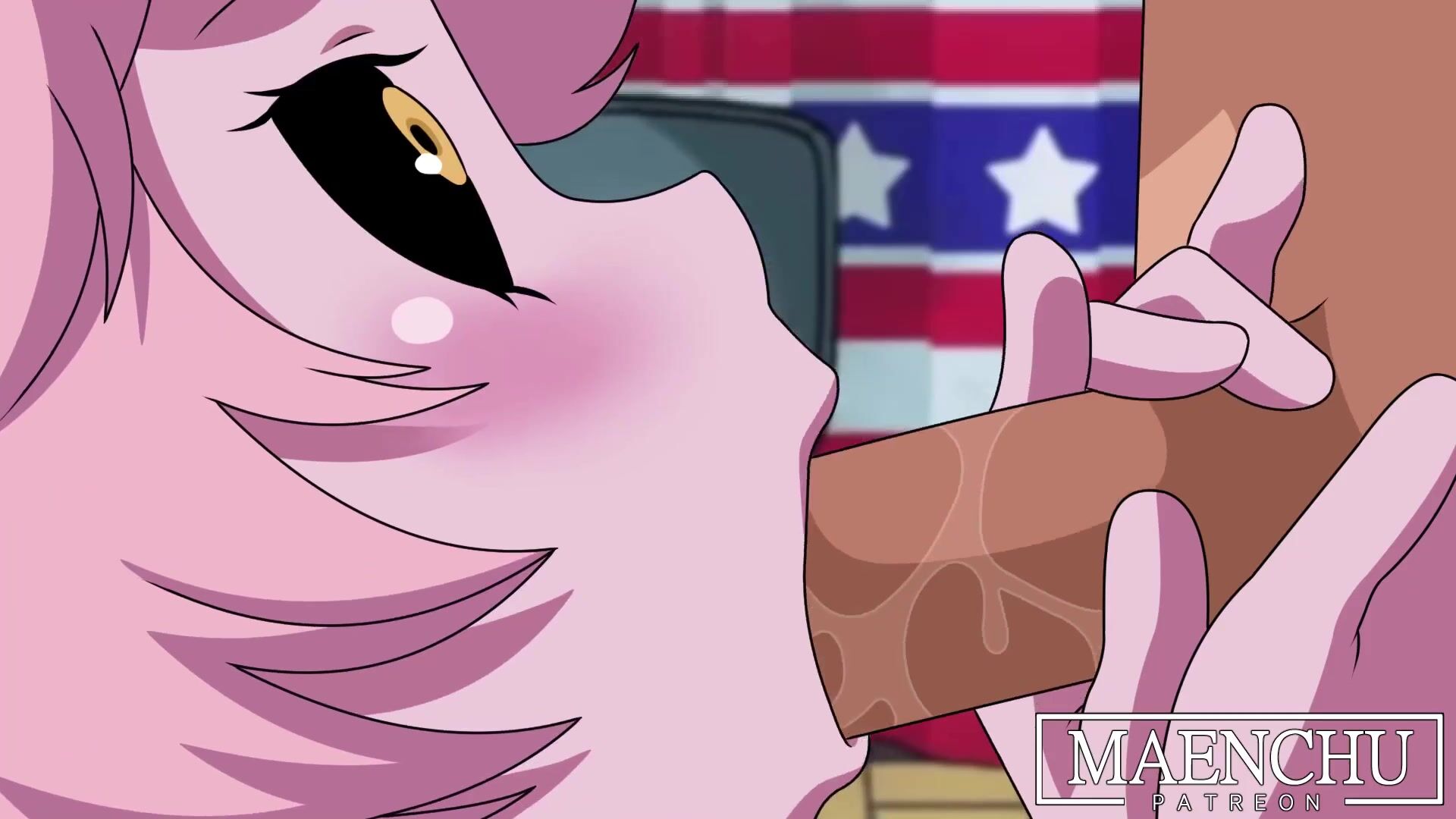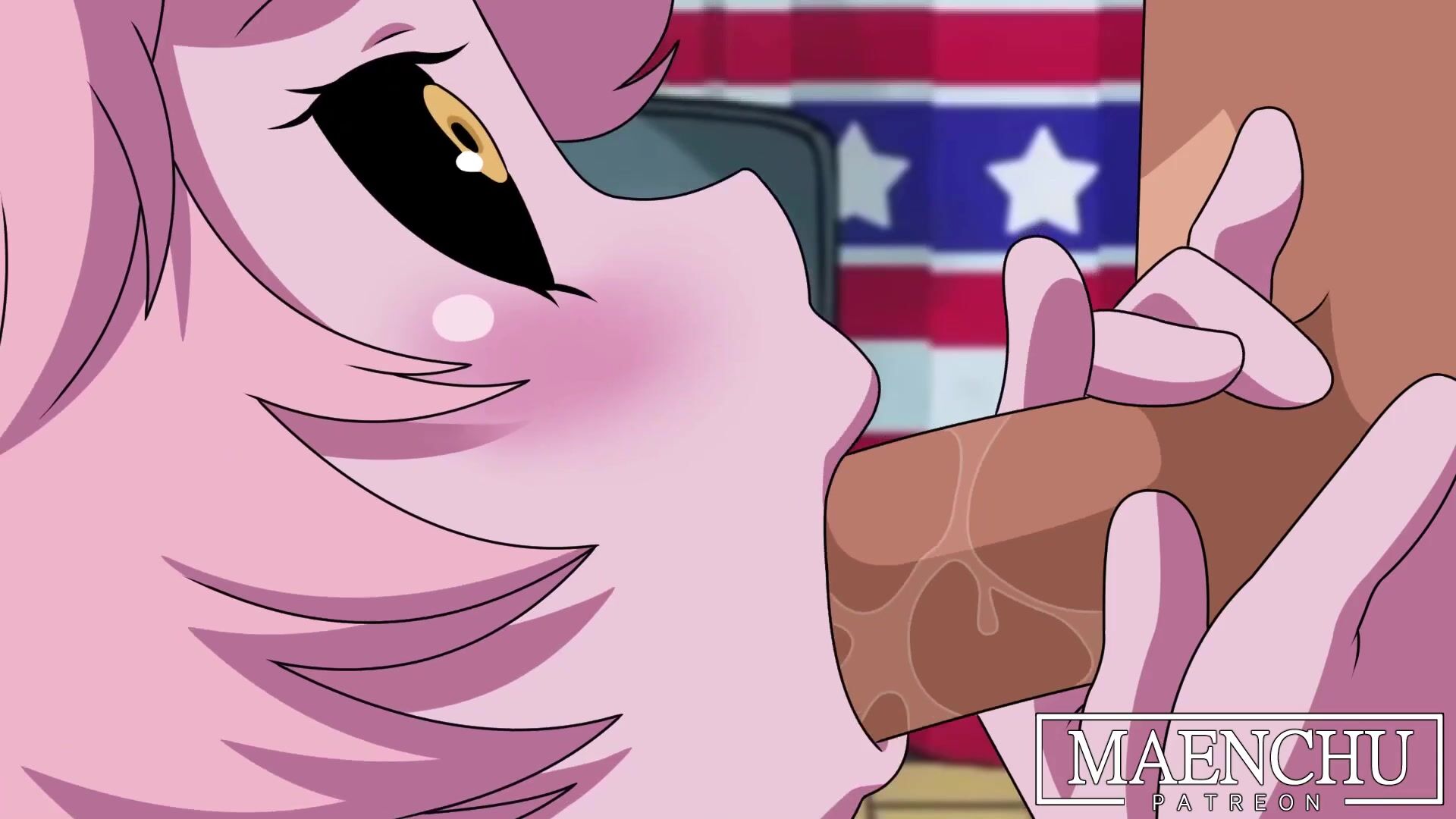 Horny Angel Dust lures in Fan Character Sharky with her seductive powers!