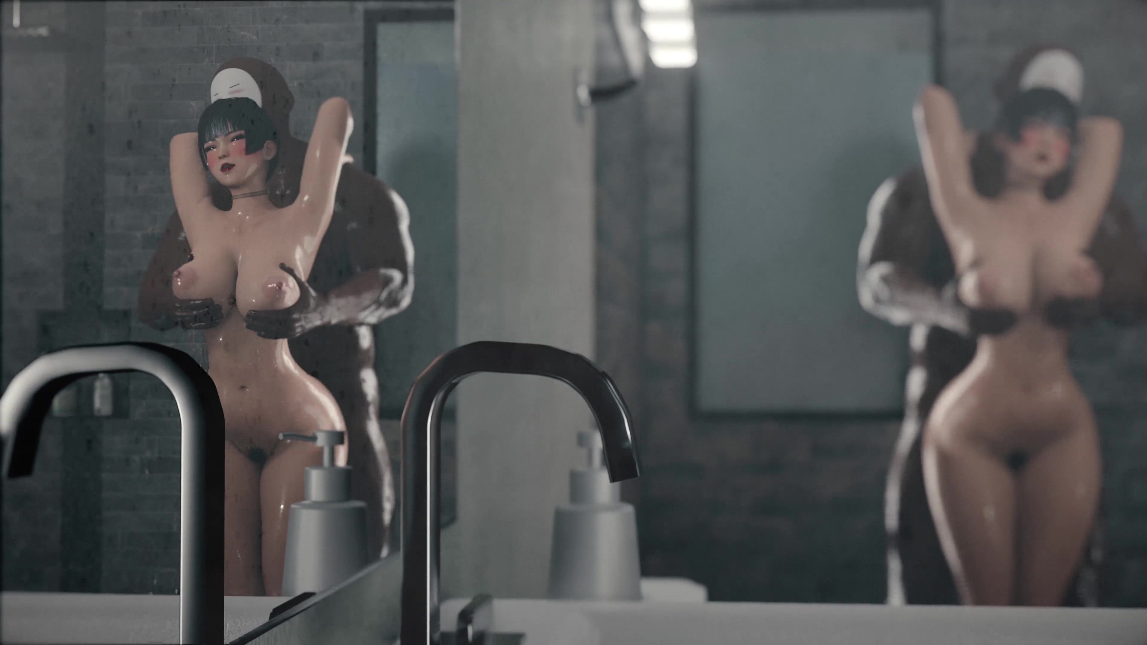 Watch Nyotengu take a steamy shower while surrounded by bouquets of black roses in stunning 4k quality