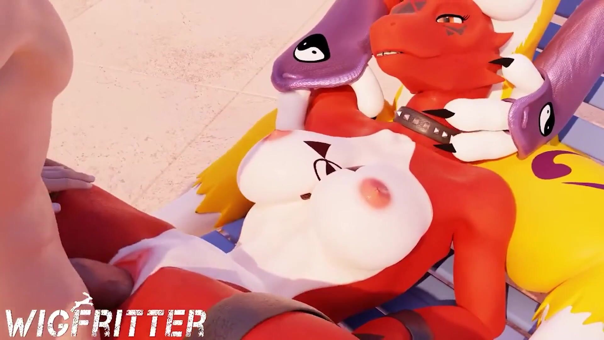 Undyne and Guilmon in a wig fuck!