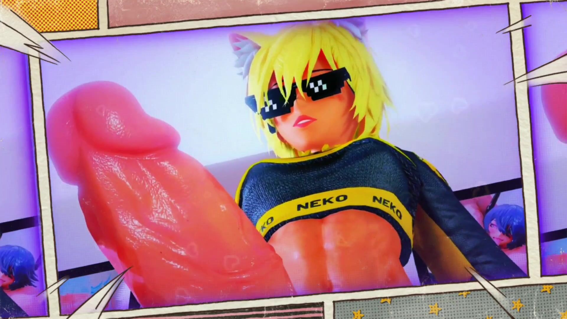 Watch the sexy Neko fucking in the couch while her lover is enjoying the view from behind