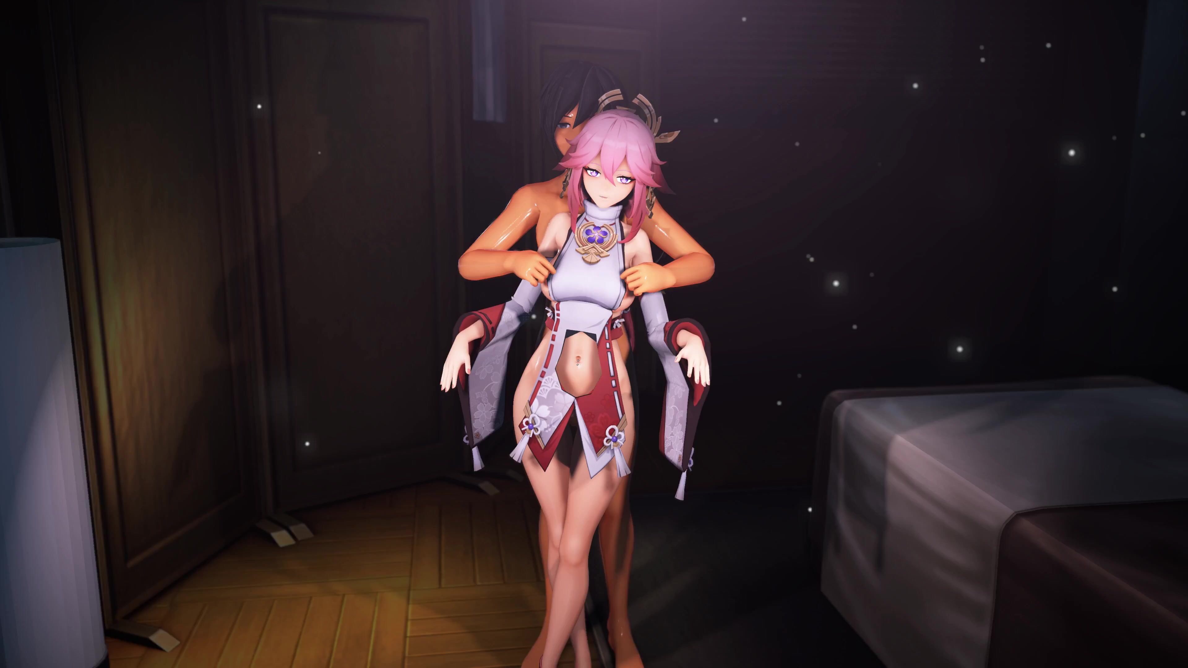Watch Yae Miko tease and please in this hot hentai porn video!