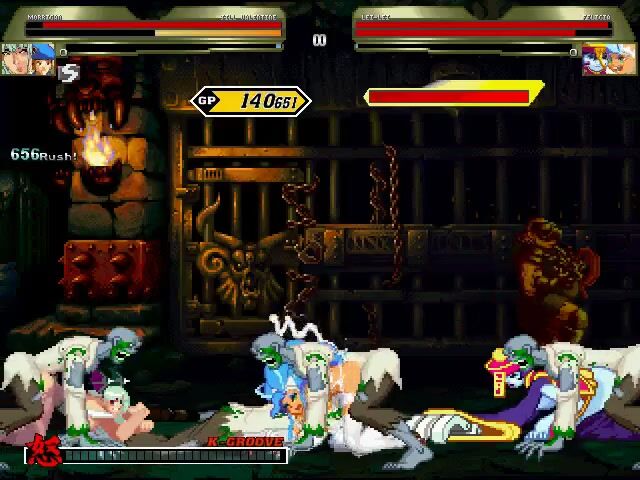 Watch as the sexy demon slayer fights off a horde of horny demons with her magical...