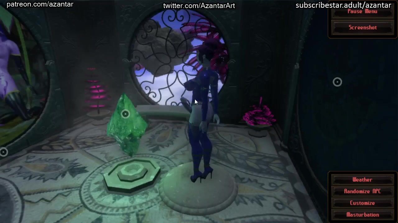 I created several new elements from which in the future it will be possible to assemble a temple of sex, which will be the central location of the game. in addition, I finished creating underwear for the penis and exported it to the game. Crystals for teleportation are now activated with an orgasm, just like masturbation chairs before. Now the player will be able to change the video that is played on the screen of the sperm extractor. In addition, I decided that a similar ability to change the images in the pictures would also be useful. So girls will be more interested in masturbating :) You can find new versions of the game and news on the progress of development here: https://twitter.com/AzantarArt http://patreon.com/azantar http://subscribestar.adult/azantar