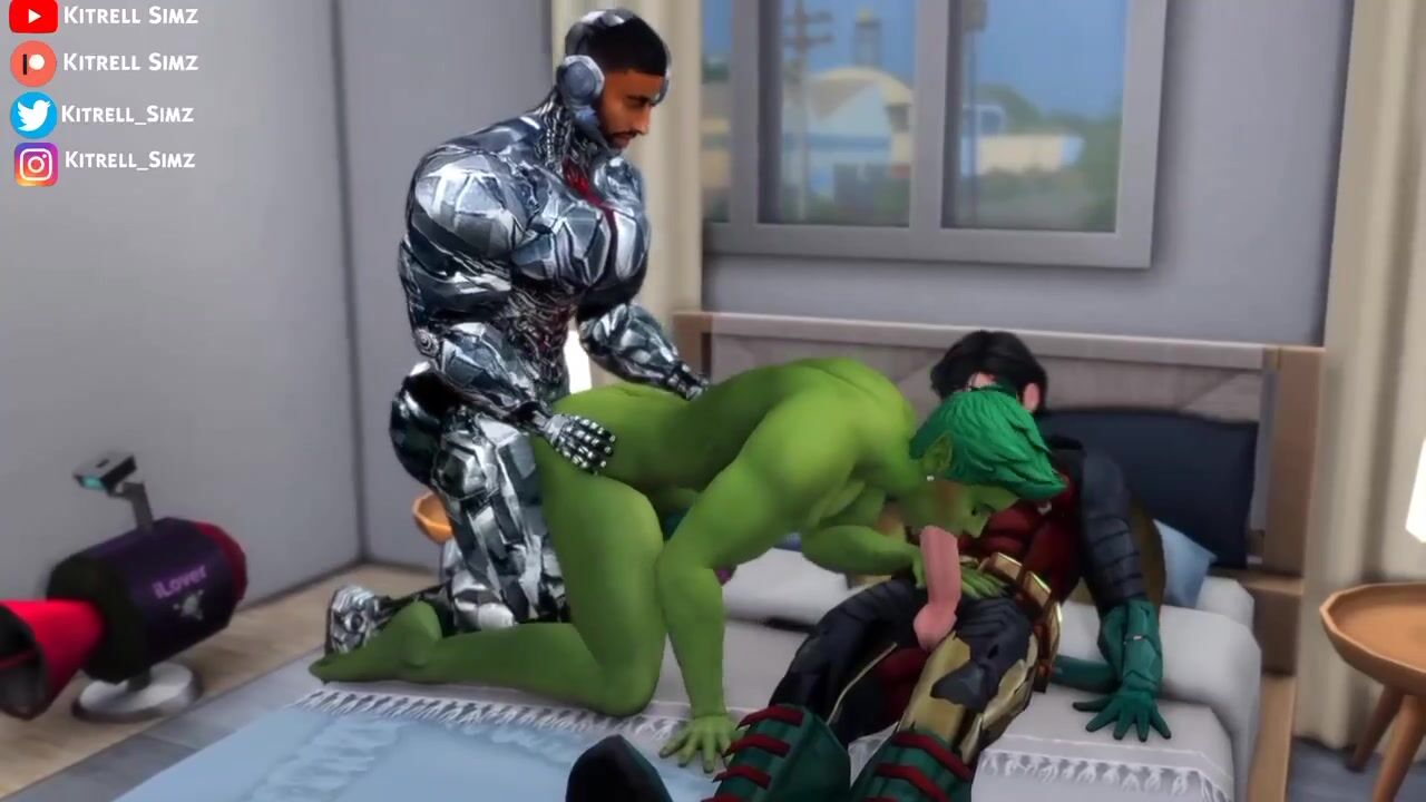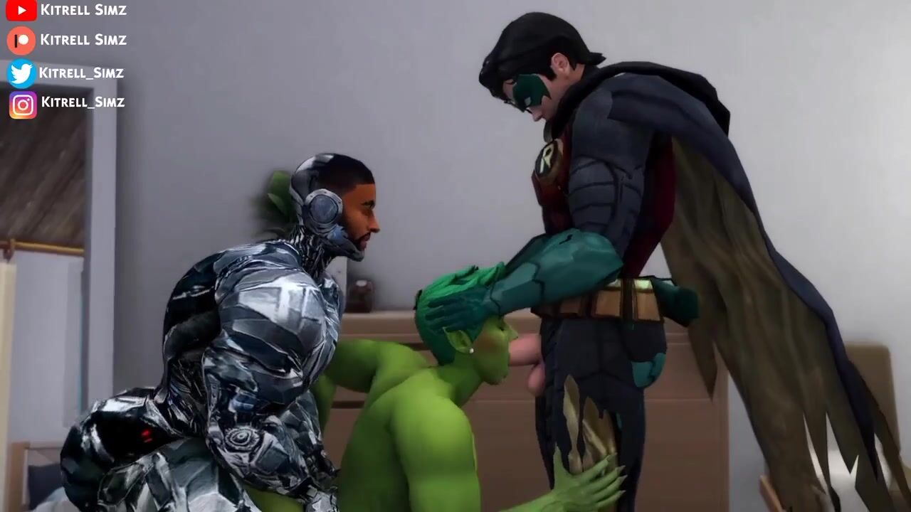 This hentai PORN video description involves Beast Boy, Cyborg and Nightwing having some fun with a dildo. After catching him using it, they decide to make him their sex slave and have their way with him.