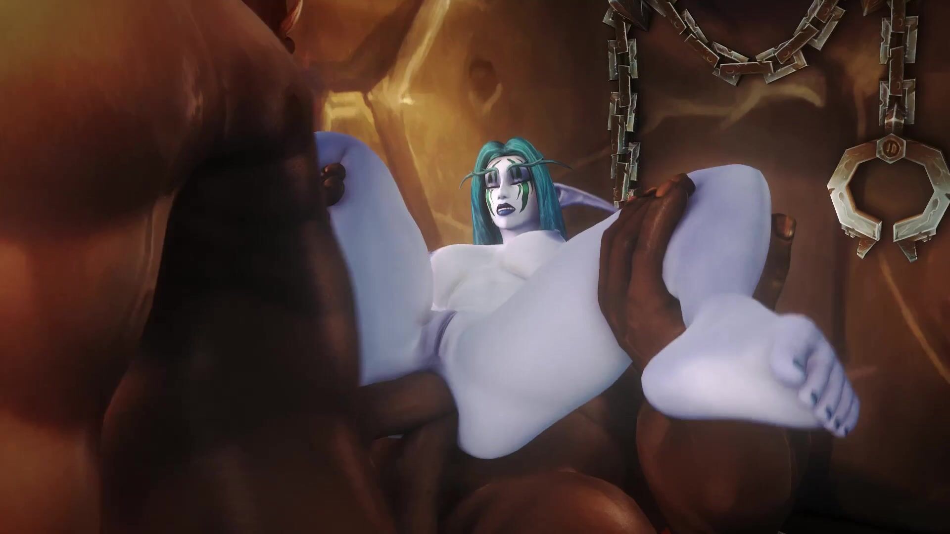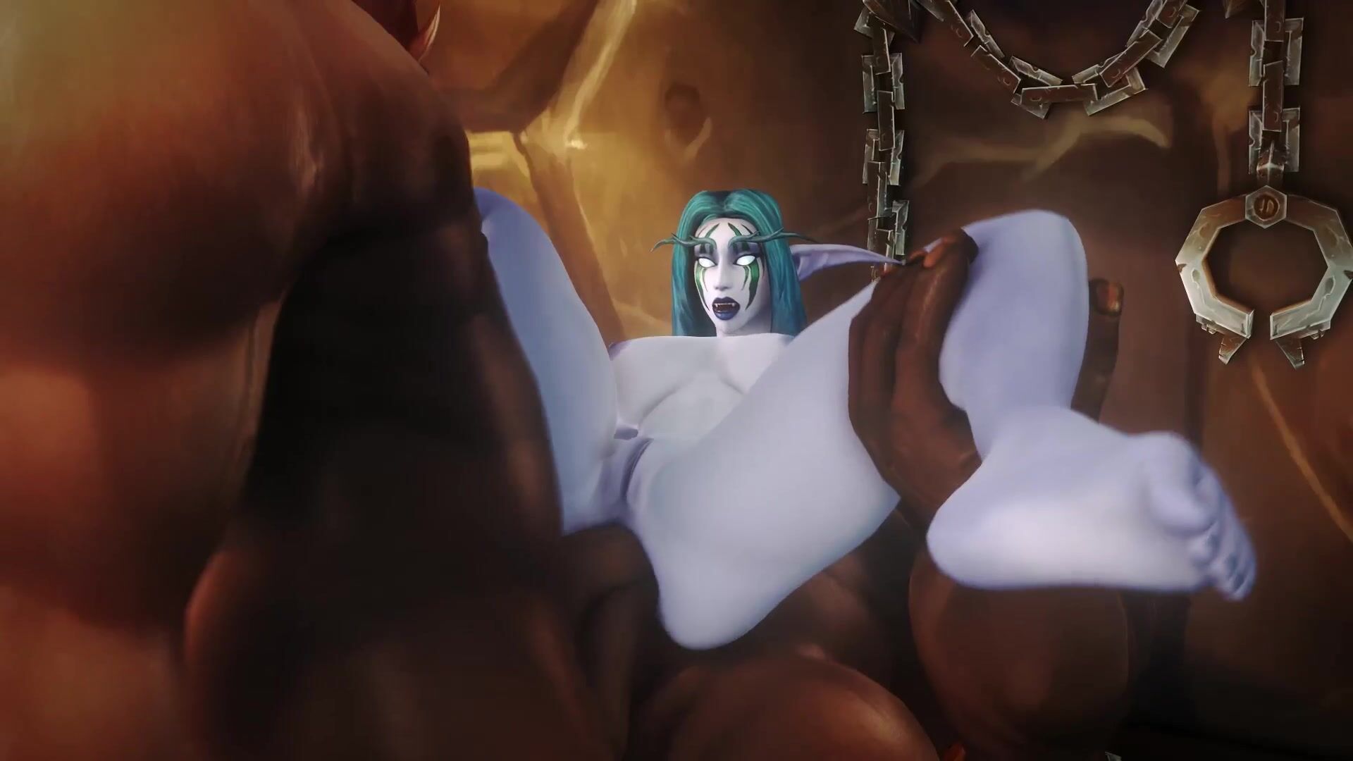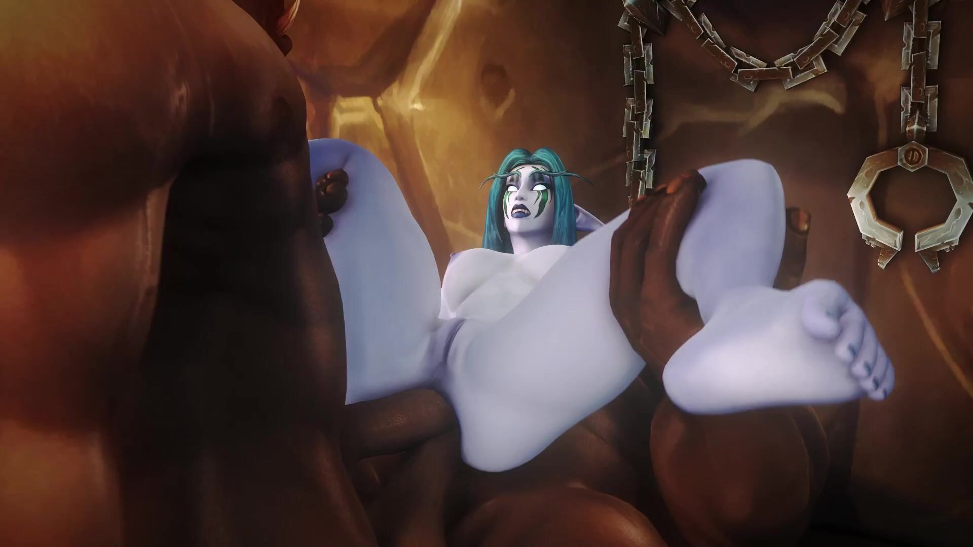Ziahna gets screwed by two Orcs in her ass while shes getting spanked by their swords