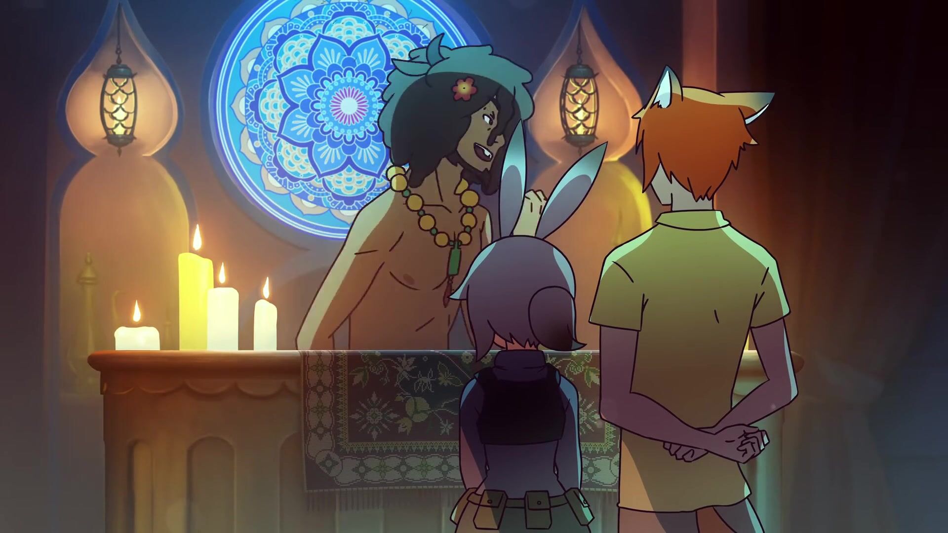 Horny Angel Dust lures in Fan Character Sharky with her seductive powers!